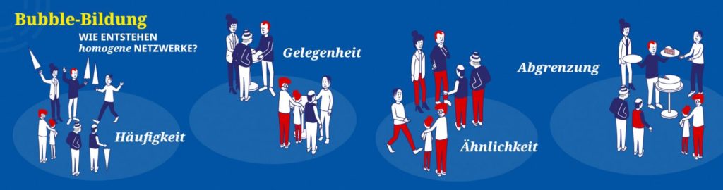 dass die Gelegenheiten für alltägliche soziale Begegnungen beispielsweise in Nachbarschaften, Vereinen, Schulen oder im Arbeitsumfeld sozial vorgefiltert sind. Darüber hinaus wirken auch Formen